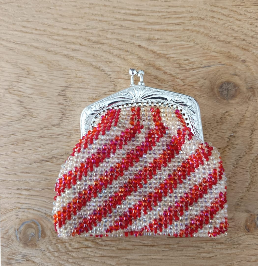 Kleine kralenbeurs in streepmotief.
