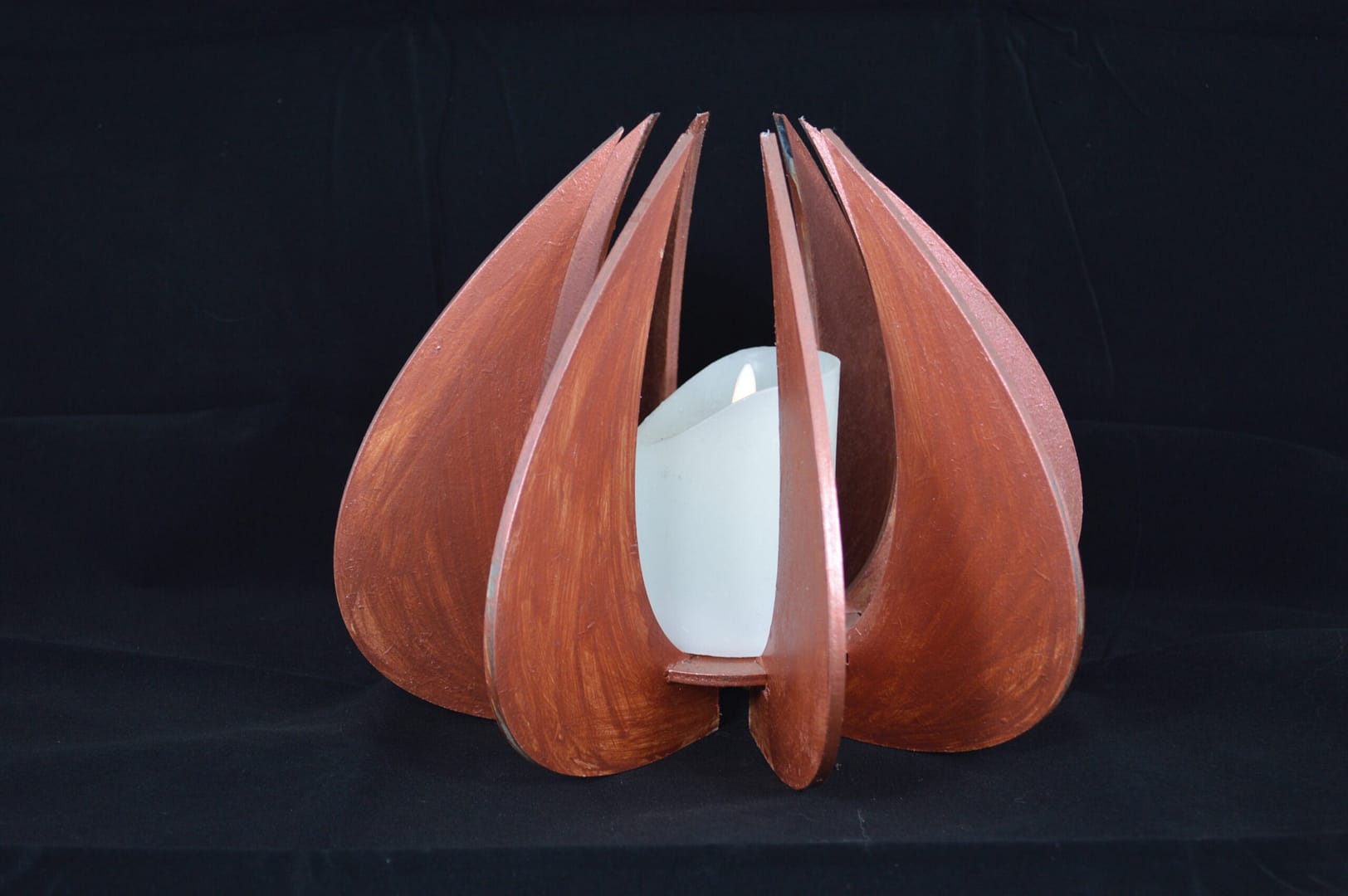 Kaarshouder in tulpvorm, wordt met kaars en zonder batterijen geleverd.